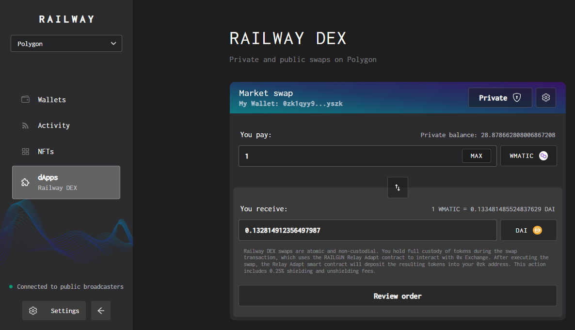 * [Shielded](https://help.railway.xyz/transactions/shield-unshield) some assets into your 0zk balance
