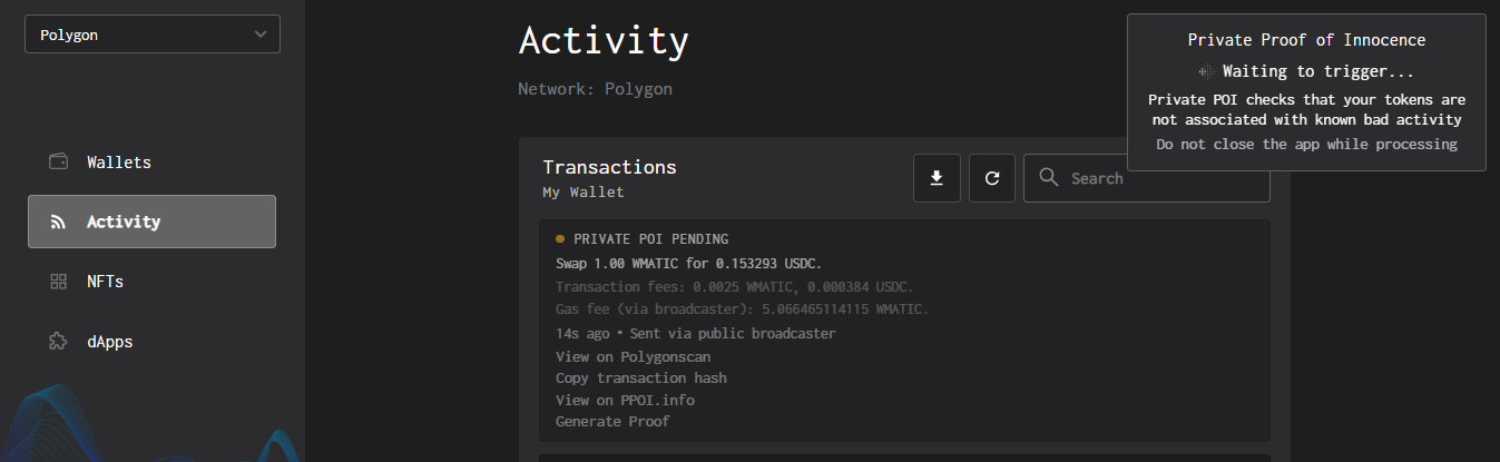 4. You will receive a confirmation of the swap. View the details of the transaction from the **"Activity" tab or a block explorer**.